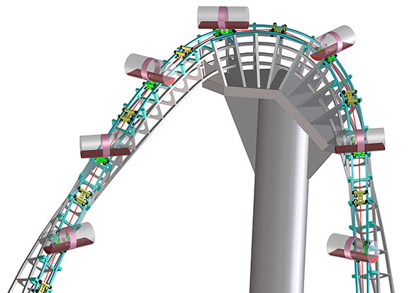 Spezialförderanlage - Die histec engineering ag konnte schon viele Ideen in die Praxis umsetzen, wie das Beispiel dieses Riesenrades in der Form eines Segels zeigt.