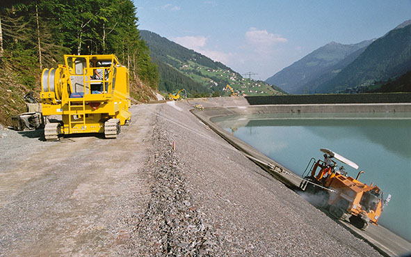 Windenwagen für den Dammbau - Eine beachtliche Anzahl der für den Dammbau erforderlichen Windenwagen konnte von der histec engineering ag entwickelt und konstruiert werden. Jeder der neuen Windenwagen brachte eine bedeutende Innovation in den Maschinen-Park der WALO Bertschinger AG.